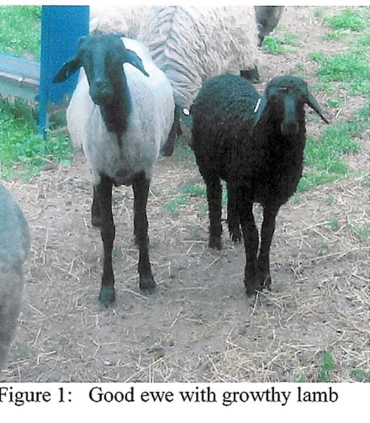 Sheep breeders and judges must know how a "top-line" should look, why straight legs are important, and why poor growth-rates and below-average-smarts are not good for the breed. Karakul breeders should know this too, only the Karakul is built completely different than the conventional sheep breeds. Our sheep are not just coat-hangers for pretty wool...there is something very unique underneath. Karakuls should possess hidden traits, ones that we as shepherds should be aware of, but judges can't detect. These include: good health, seasonal survivability, produce good sized lambs on reasonable feed, out of season breeding, ease of lambing, good mothering instincts, milkiness, lasting teeth, good feet, and finally resistance to disease. (Figure 1) (Click to view picture)
